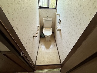 磐田市のお宅で(当社でのリフォームは3回目、今回のリフォームのご紹介は1回目)、古くなった便器を節水便器に取り替え、内装を貼り替えるトイレのリフォームをしました。