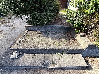 浜松市浜名区の公会堂の敷地内のコンクリート製の階段が破損しているので、コンクリートで修復するエクステリアのリフォームをしました。