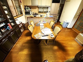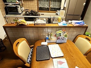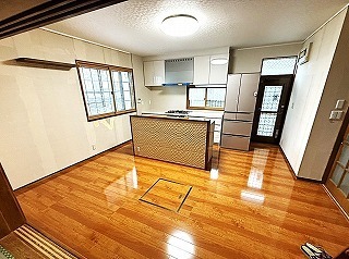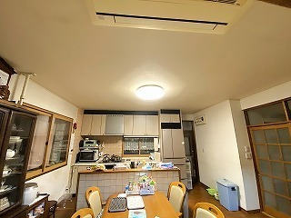 リフォーム前のダイニングキッチン。Ⅱ型のフルオープンのシステムキッチンが付いています。