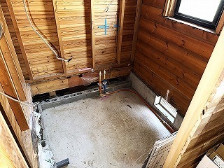 ユニットバスを解体・撤去したところ。土間にコンクリートを打たなくて良いので、工期が1~2日短くなります。