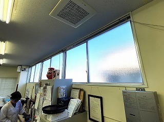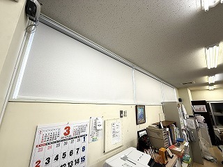 浜松市浜名区の事務所で、窓に付いている古くなったブラインドを使い勝手の良いロールスクリーンに取り替える、内装のリフォームをしました。