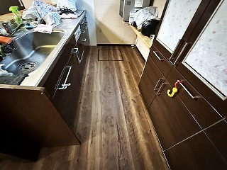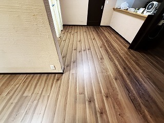 カバー工法で施工したリフォーム後のリビング側の床。