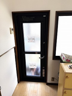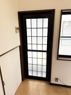 取り替えリフォーム前の勝手口ドア。単板ガラスです。