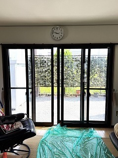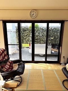 内窓の取り付けリフォーム前の、リビングの掃き出し窓。