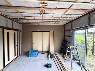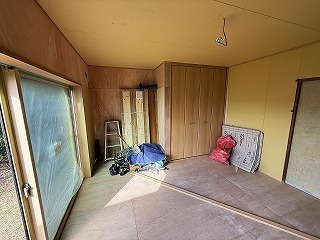 内部を解体・撤去したリフォーム中の和室。この掃き出し窓は取り替えます。