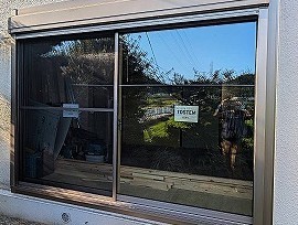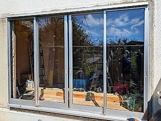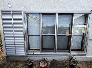 こちらは和室に付いている4枚建て引戸で雨戸付の、掃き出し窓サッシのリフォーム前の外観。