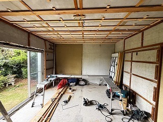 壁や天井に下地材のボードを張り、押入があった所にクローゼットを作ります。