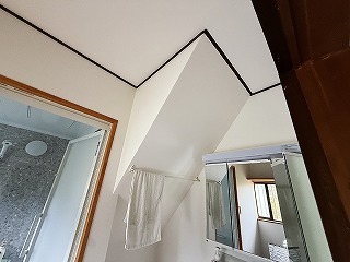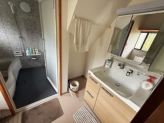 浜松市浜名区のお宅で(今回のリフォームのご紹介は2回目)、前回ご紹介した浴室のリフォームで0.75坪のタイル貼りのお風呂を洗面所側に広げて1坪タイプのシステムバスを入れたので、今回は1.25坪の洗面所を1坪に小さく作り直す洗面・洗濯・脱衣所のリフォームをご紹介いたします。
