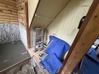 解体したリフォーム中の浴室洗面・洗濯・脱衣所。