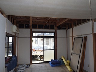 天井や間仕切り垂れ壁を解体した、リフォーム中の元和室。