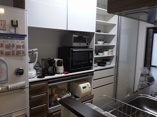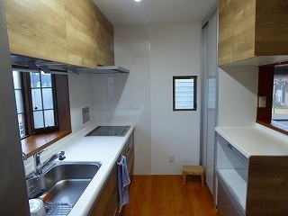 浜松市中区のお宅で、2階にある台所のセパレートタイプのキッチンセットをシステムキッチンに取り替え壁にキッチンパネルを貼り、床は耐水合板を既存床の上に重ね張りしクッションフロアで仕上げ、壁と天井のクロスを貼り替えるなどの、台所の全面リフォームをしました。