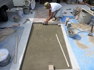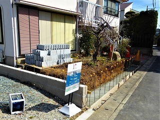 ブロック塀用の鉄筋を組み込んだベースコンクリートを打ったところ。