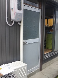 浜松市西区の中古住宅を購入されたお宅で、離れにある玄関ドアを撤去して壁にし、洗濯・洗面所だった所の外壁を解体して新しい出入口(裏口)を作る、出入口の新設リフォームをしました。