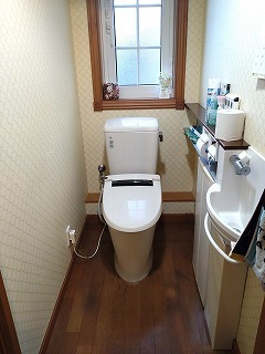 〇住宅のトイレの内装を新しくするため既存便器を脱着し内装を全て貼り替えるトイレのリフォームをしました。(浜松市中央区)