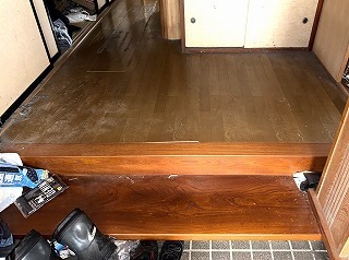 (04/10)ブカブカしている所を補修してカバー工法で張り替える廊下の床のリフォーム(浜松市浜名区 令和7年9月)
