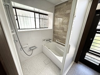〇住宅の古くなったユニットバスを最新型の高性能システムバスに入れ替え、出窓を断熱引き違いサッシに取り替える浴室のリフォームと、浴室との境の壁を復旧して内装を貼り替える洗面所のリフォームをしました。(湖西市)
