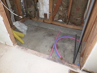 ユニットバスを解体・撤去したところ。土間にコンクリートを打たなくて良いので、工期が1~2日短くなります。