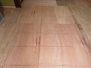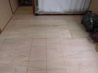 新しい耐水合板を張った、リフォーム後の和室の荒床。